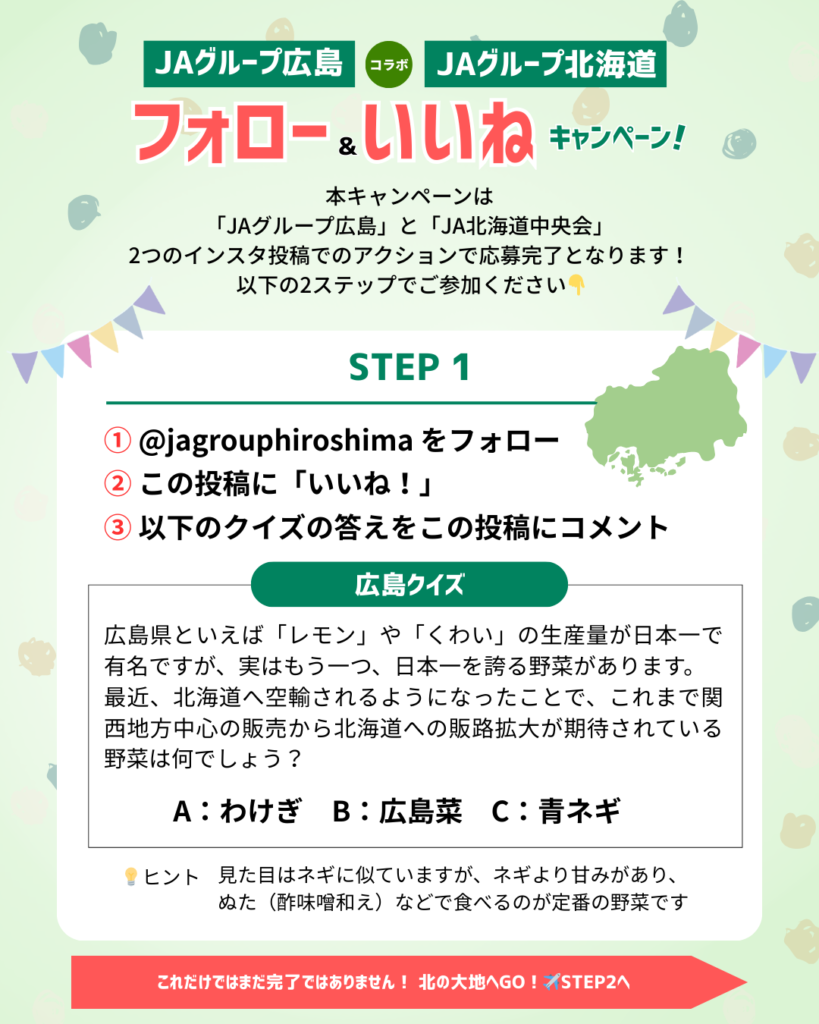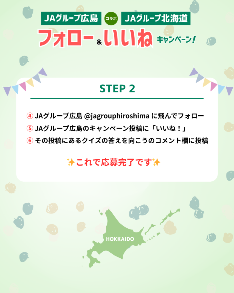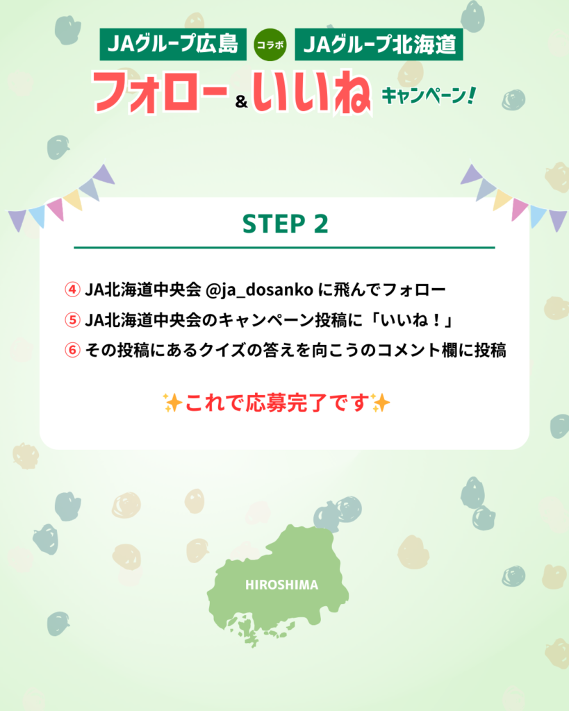 JAグループ広島とJA北海道中央会の2つのInstagramアカウントをフォローし、今回のキャンペーンを案内した投稿に「いいね!」、最後にクイズの答えをコメントすればMachico米や北海道のアイスクリームが当たるかも!?ぜひInstagramのJAグループ広島【公式】をチェックしてください!
